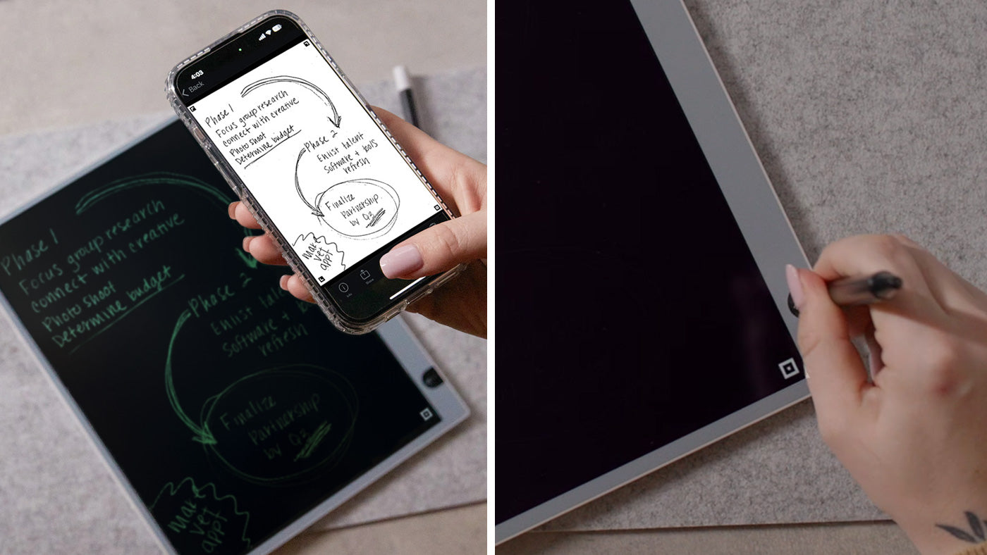 If this is your first foray into the world of reusable notebooks, think of Blackboard 2.0 as an elevated “one-stop-shop” designed with the most essential features and functionality to help you get started. Ditch the countless pages of paper, ink pens, and charging cords, and embrace the reusable smart writing solution that saves notes with a simple scan.