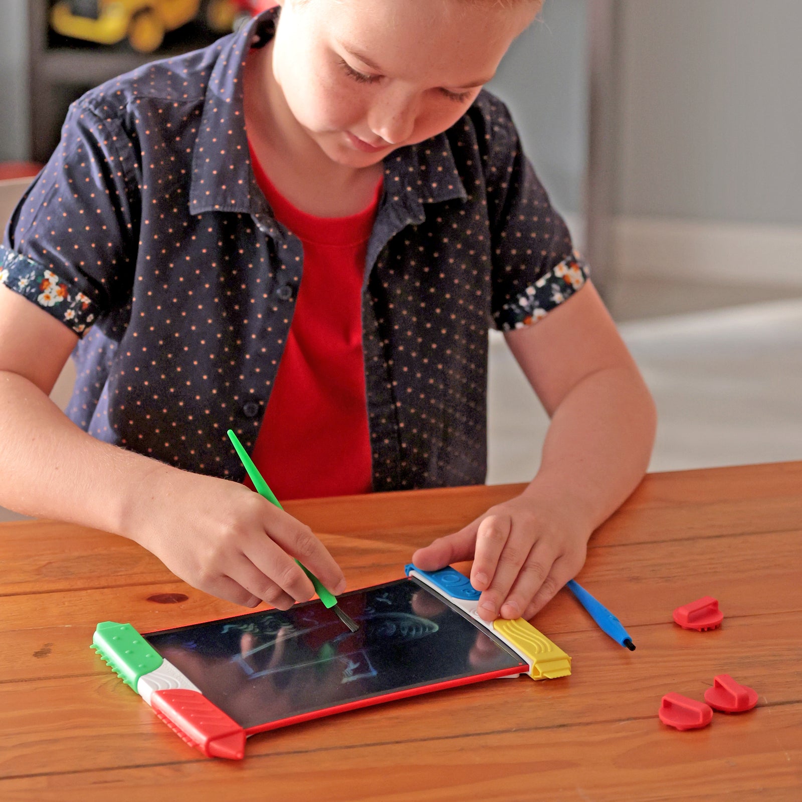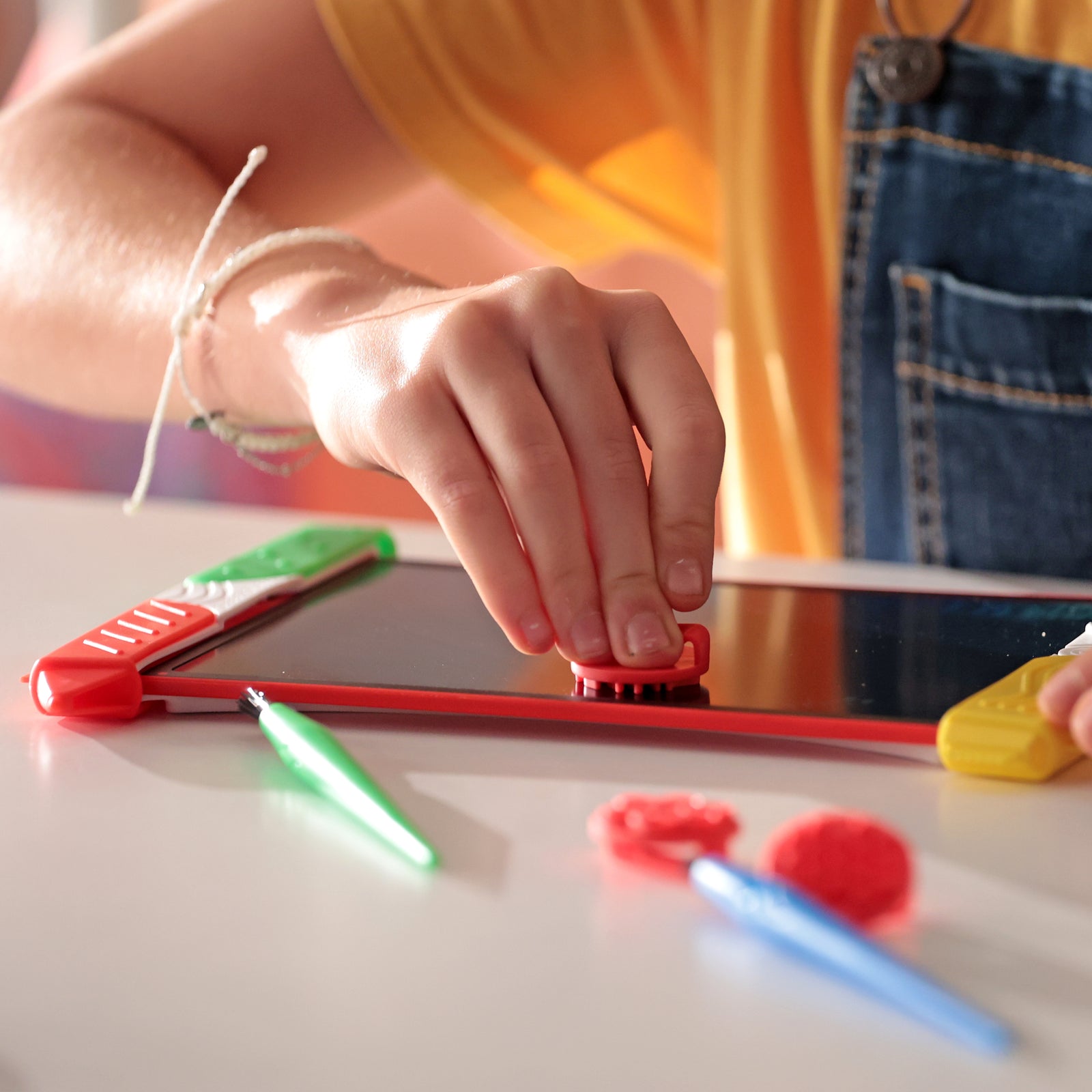 Just push the button and watch the drawing tablet clear itself—just like magic!