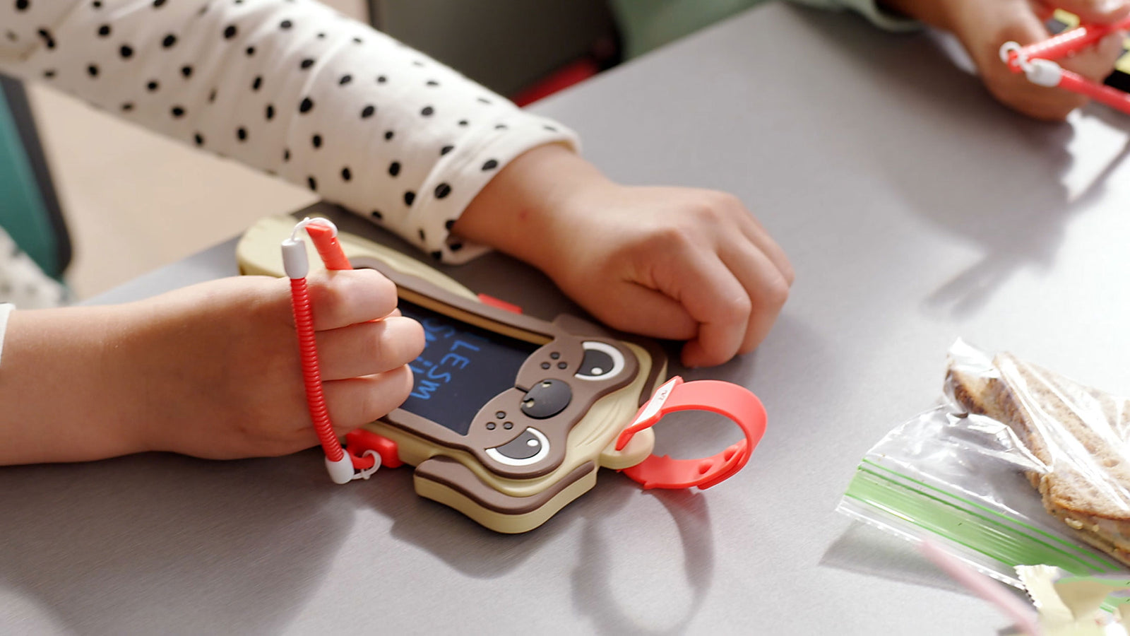 Sketch Pals easily clip on backpacks, lunch boxes or luggage, which means kids can stay occupied without screen time. Because the stylus is attached, there’s no worry of it getting lost.
